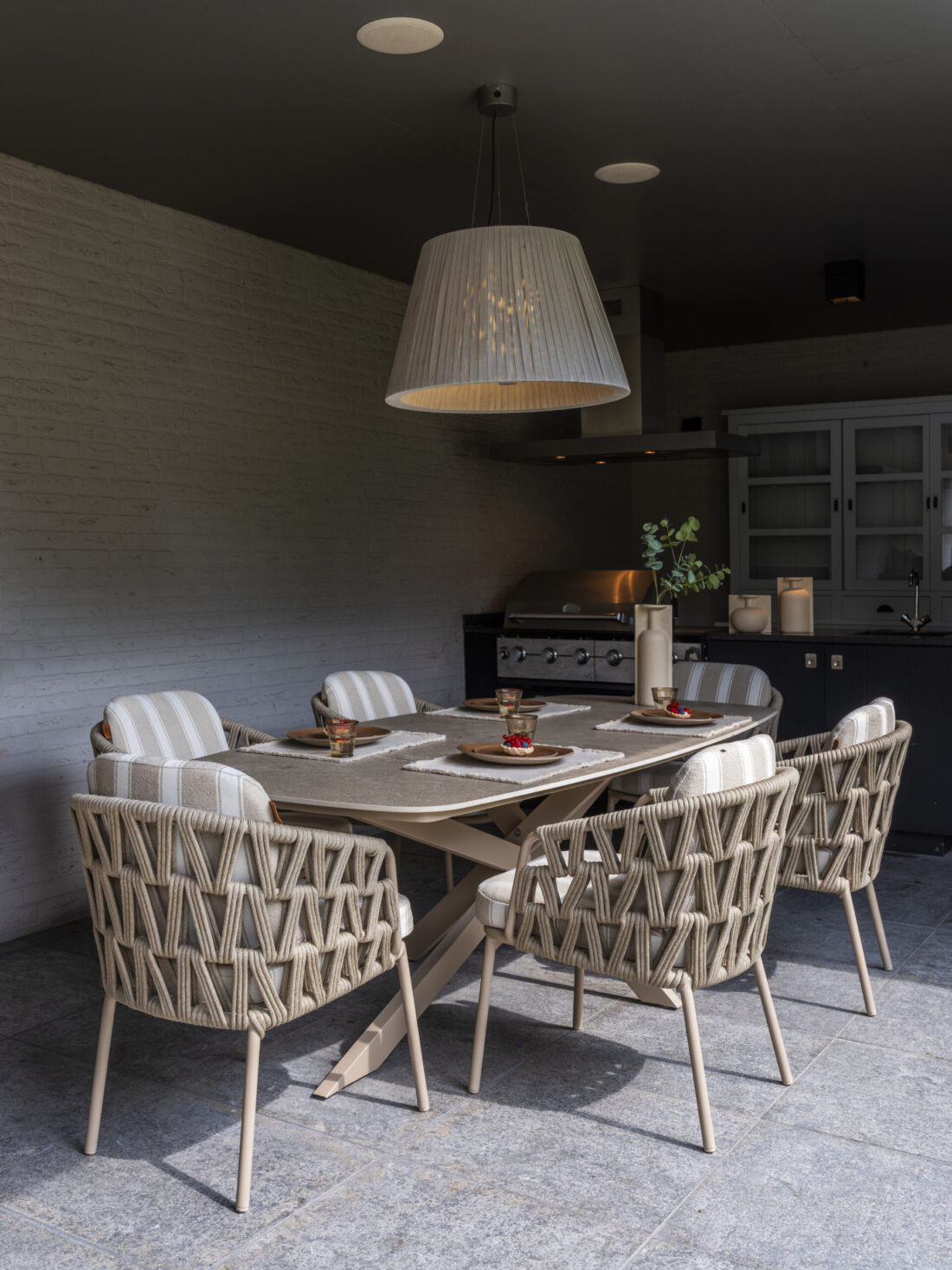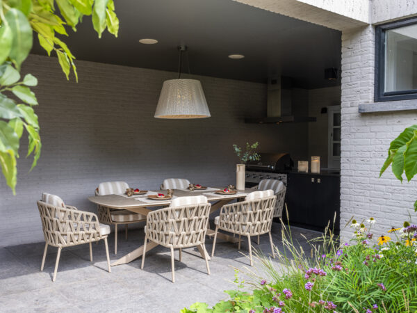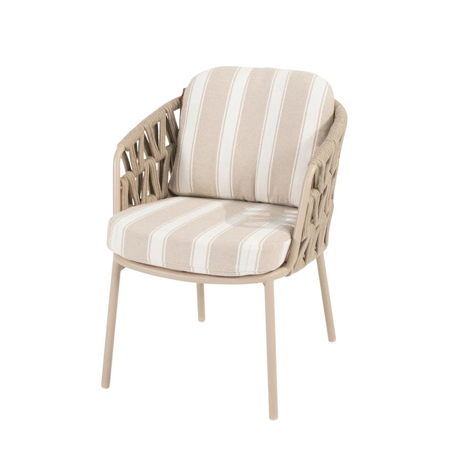 Stolica Beverly donosi profinjeni hotelski ugođaj u vaš vanjski ili unutarnji prostor, inspiriran bezvremenskim stilom legendarnog hotela Beverly Hills u Kaliforniji. Prugasti uzorak na jastucima evocira prepoznatljivu kalifornijsku eleganciju – svijetlu, opuštenu i luksuznu, savršenu za ugodno i dugotrajno sjedenje.