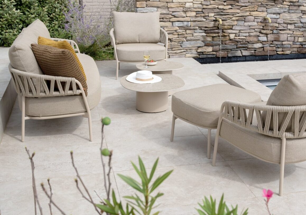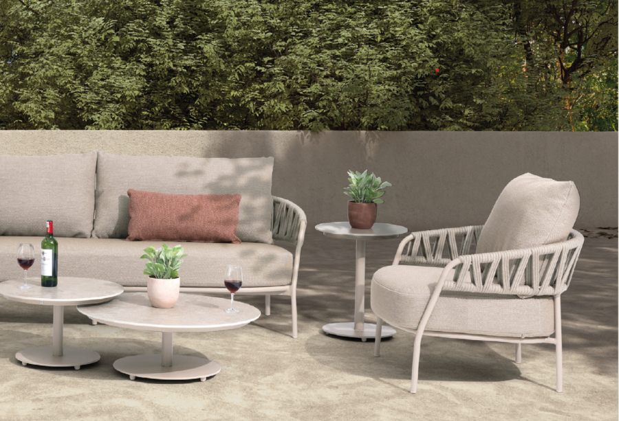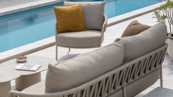 Elegantna lounge garnitura za vanjsku uporabu koja spaja vrhunsku udobnost i suvremeni dizajn. Mekani, udobni jastuci u neutralnim tonovima, čvrsta konstrukcija i profinjeni detalji stvaraju savršeno mjesto za opuštanje uz bazen, na terasi ili u vrtu. Zahvaljujući bezvremenskom izgledu, garnitura se lako uklapa i u unutarnje prostore.