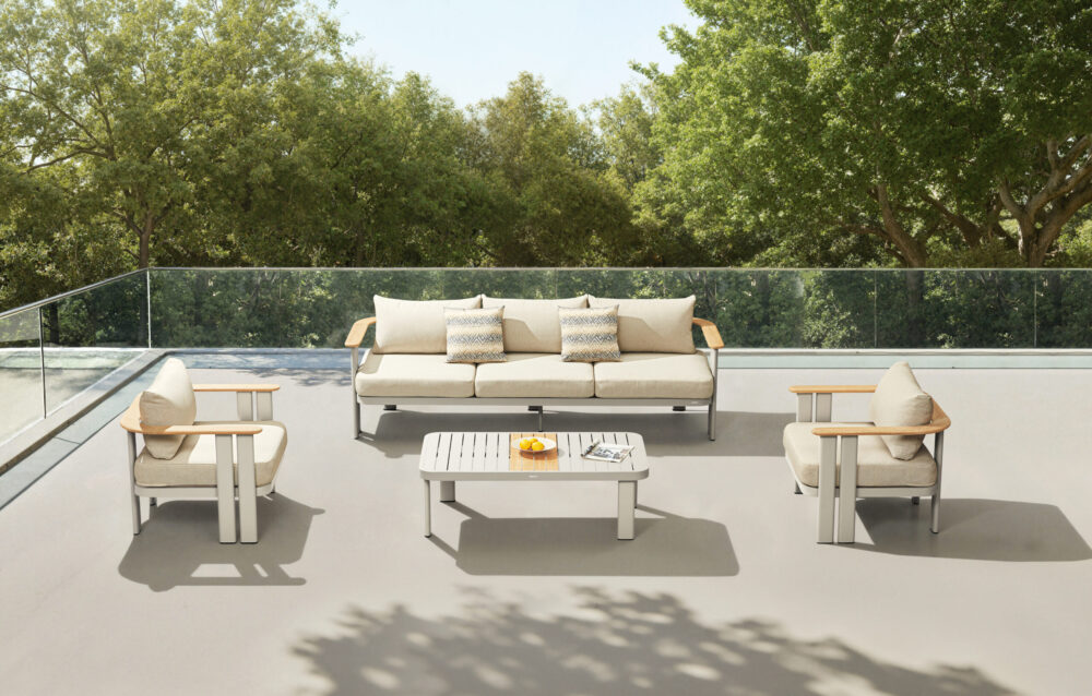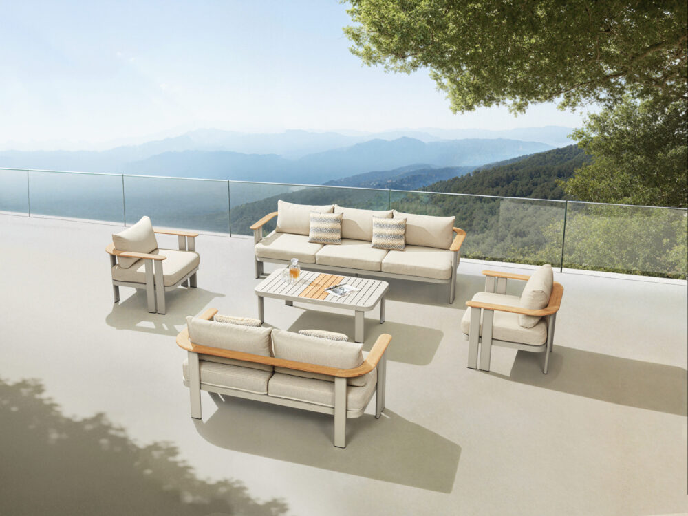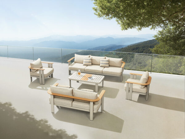 Kolekcija Pardee dizajnirana je za maksimalnu udobnost i dugotrajnu upotrebu na otvorenom. Čvrsta aluminijska konstrukcija osigurava stabilnost i otpornost na vremenske uvjete, dok drveni nasloni za ruke unose toplinu i prirodan izgled. Debeli, mekani jastuci u neutralnim tonovima pružaju iznimnu udobnost i lako se uklapaju u svaki ambijent. Praktičnost i udobnost, stabilnost, lakoća i prilagodljivost, glavne su značajke ove kolekcije vrtnog namještaja koju je dizajnirao Claudio Bellini.