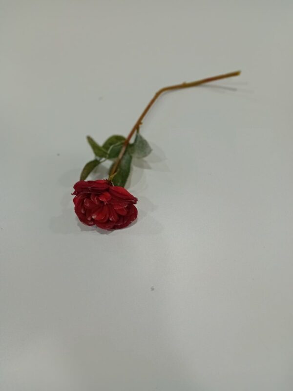 Grana ruže, zaleđeni listovi, visine 36 cm. Dostupna u 4 boje – bijela, crvena, ciklama i boja šampanjca.