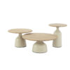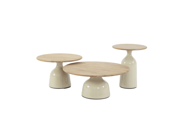 Serija stolića za kavu JUNE unose toplinu i sofisticiranost u svaki prostor. Moderni i elegantni stolići za kavu dolaze s okruglim gornjim pločama od tikovine i stabilnom keramičkom bazom u krem nijansi.