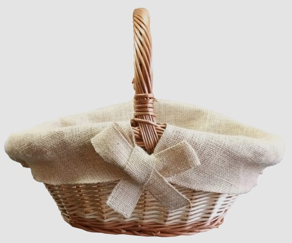 Višenamjenska košara, omiljena za aranžiranje poklona, kao i za odlazak u kupovinu. Izrađena je u kombinaciji dvije prirodne boje šibe te umetkom od prirodne jute.