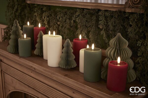 Ova elegantna LED svijeća donosi toplu, realističnu svjetlost bez nereda i rizika pravog plamena. Vanjska strana je prekrivena pravim voskom, što joj daje prirodan, autentičan izgled svijeće. U bogatoj crvenoj boji i s dekorativnim rebrastim uzorkom, lako podiže ugođaj svakog prostora.