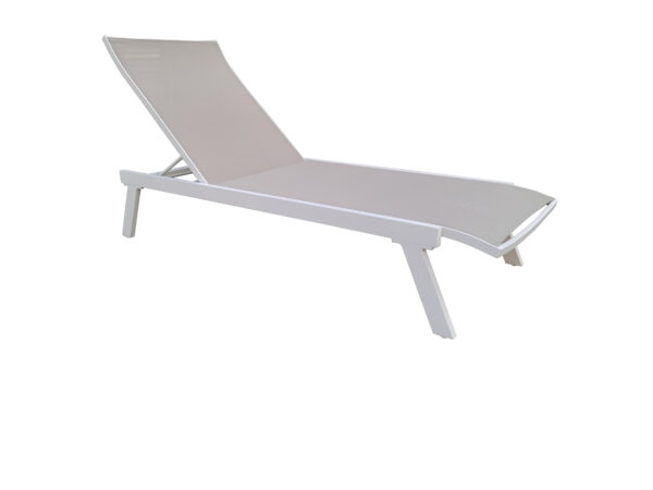 Tekstilen se prilagođava tijelu, ne zadržava vlagu i ugodan je čak i pri visokim temperaturama, dok aluminijski okvir osigurava stabilnost, otpornost na koroziju i jednostavno održavanje. Podesivi naslon omogućava prilagođavanje položaja – od sunčanja do potpunog odmora.
