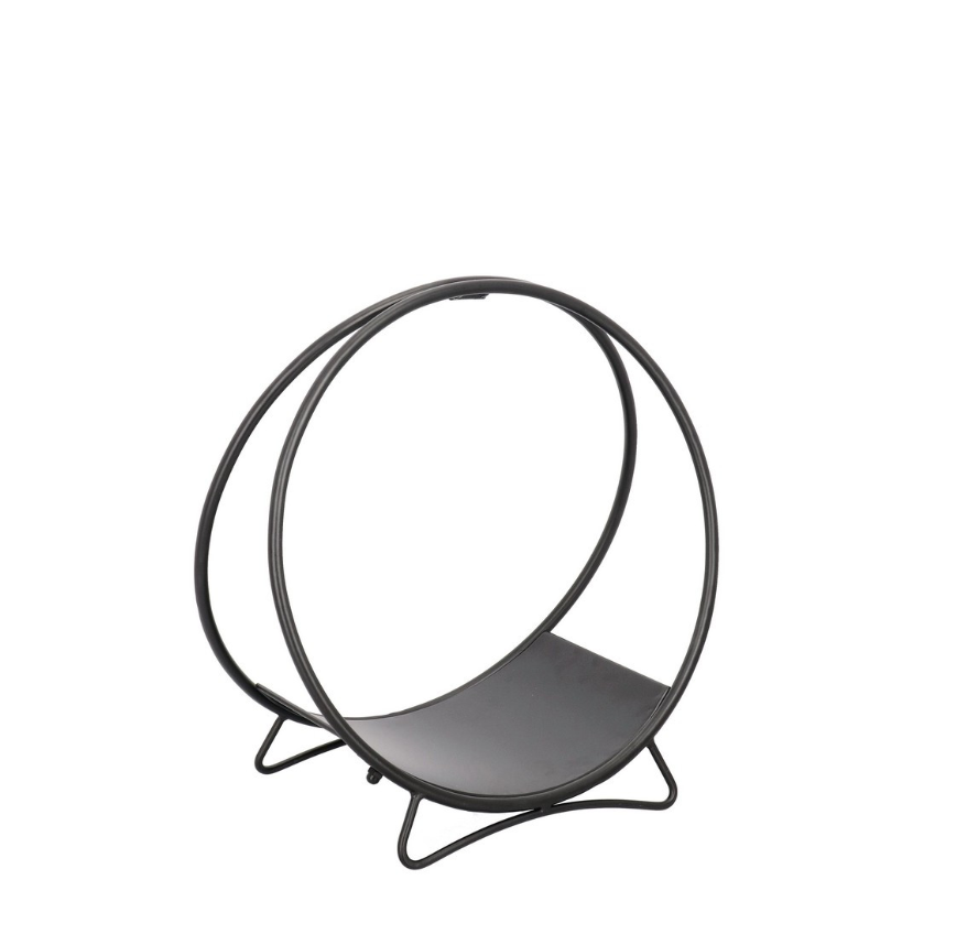Izrađen je od čvrstog metala u elegantnoj crnoj boji, s kružnom konstrukcijom koja unosi suvremeni karakter u svaki prostor. Stabilna baza omogućuje sigurno odlaganje drva, a kompaktne dimenzije čine ga savršenim dodatkom uz kamin u dnevnoj sobi ili na terasi. Idealno rješenje za uredno i stilizirano spremanje drva, a može poslužiti i kao stalak za novine i časopise.