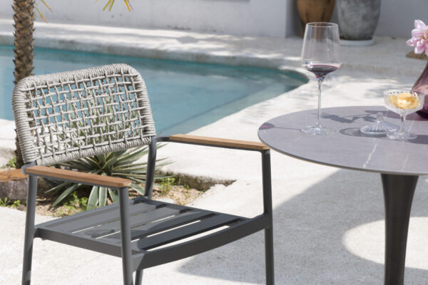 Savršena za opuštanje uz kavu ili druženje na otvorenom, ova stolica kombinira estetiku i funkcionalnost, podižući svaki prostor na viši nivo.