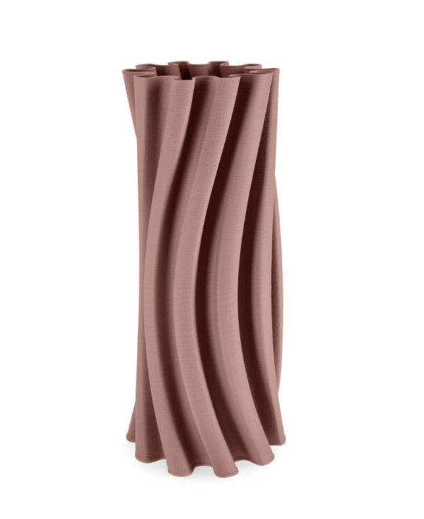 Elegantna dekorativna vaza modernog, valovitog dizajna izrađena u mat terakota boji. Svojim fluidnim linijama unosi profinjenost u svaki prostor, bilo da je koristite za cvijeće ili kao samostalni ukras. Minimalistička, suvremena i lako uklopiva u svaki interijer.