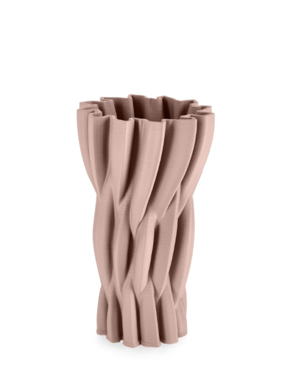 Elegantna dekorativna vaza modernog dizajna, izrađena s dinamičnim, uvijenim linijama koje stvaraju efekt pokreta. Mat roza nijansa unosi toplinu i profinjenost u svaki prostor te daje luksuzan dojam mekoće. Idealna kao samostalni dekor ili za suho cvijeće.